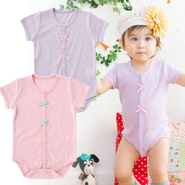 ロンパース ベビー服 半袖 女の子 赤ちゃん ベビー 服 ボディオール グレコ ロンパス 肌着 下着 60cm 70cm 80cm 前開き 水玉 ドット ピンク パープル 出産祝い ギフト プレゼント P2133 ニシキ チャックルベビー
