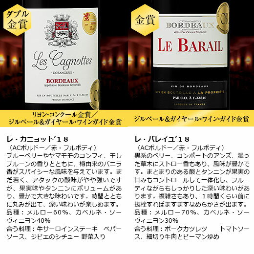 ジルベール&ガイヤール・ワインガイド金賞 [メルロー60%、カベルネ・ソーヴィニヨン30%、カベルネ・フラン10%] ●レ・カニョット’18(ACボルドー/赤・FB) ☆