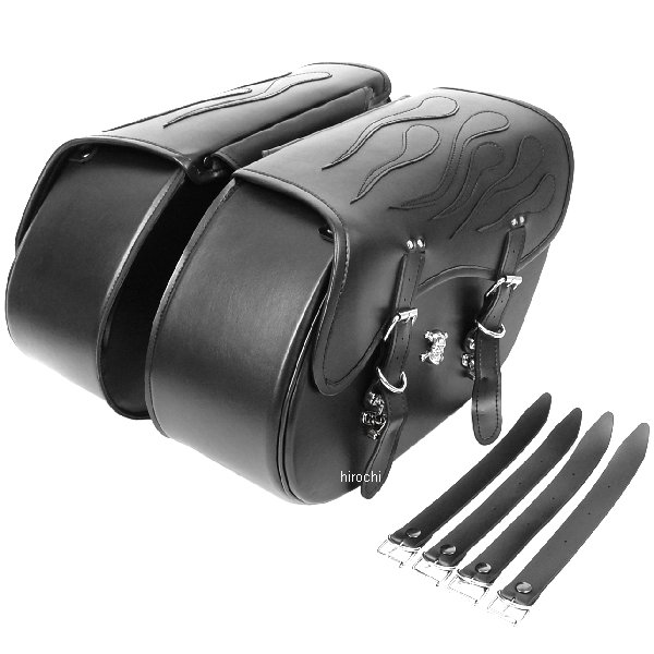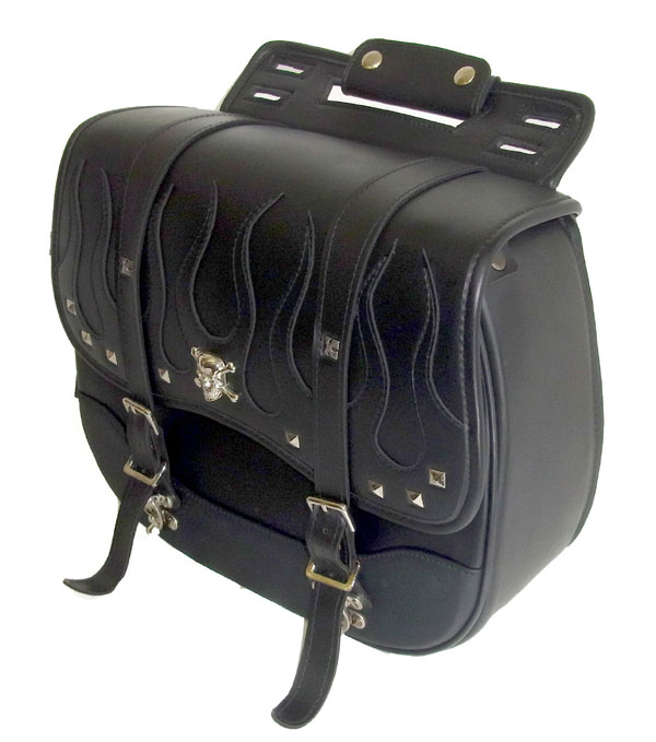 Xross クロス(MAX TRADING) サドルバッグ サイド SINGLE(ブラック無地ファイヤーステッチ/シルバースカル) YFF-001-3S